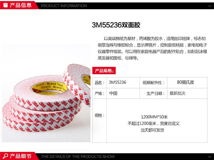 粘力持久 品質(zhì)保障您現(xiàn)在所在的位置:首頁(yè) > 工業(yè)膠帶3M 55236 綿紙雙面膠帶